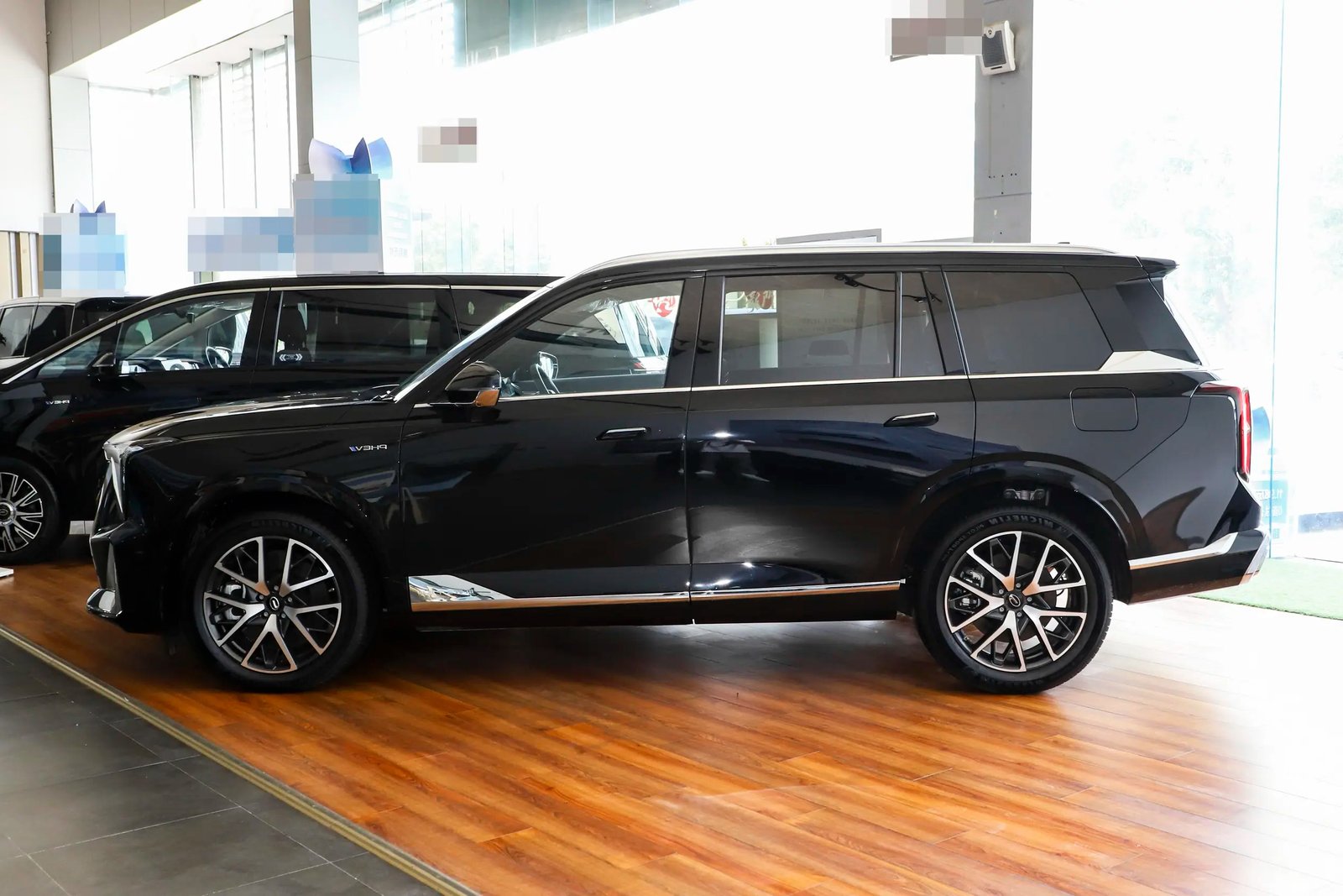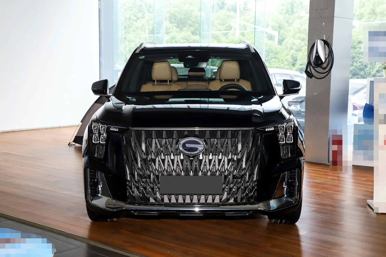 GAC ES9 PHEV uses the family design language, the front part, the huge air intake grille with a unique style of LED headlights, very recognizable. The side lines of the body are smooth and dynamic.