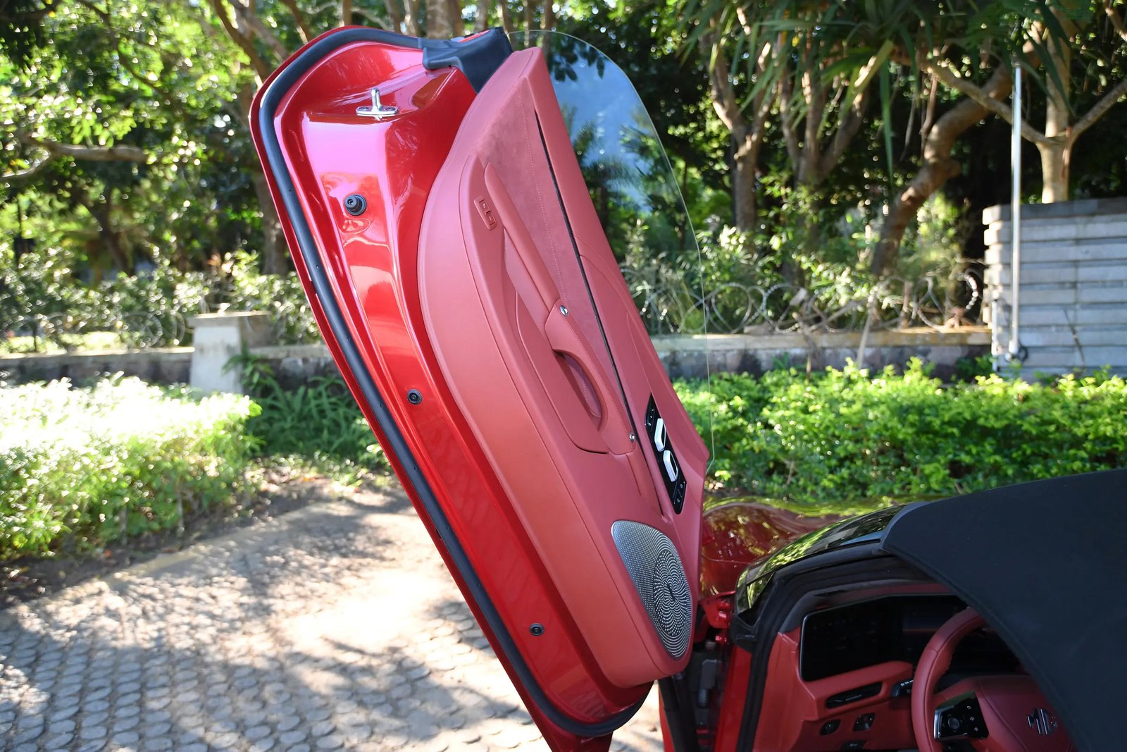 The world's only soft-top open-top and scissor door design combination is pioneering in the history of the automotive industry. The electric soft-top convertible opens and closes easily within 10s of 50km/h. Electric scissors door is not only eye-catching, more careful engineering design considerations, controlled by automatic intelligent motor, 61° gold opening and closing Angle, 30°~76° opening and closing Angle is stepless adjustable, while maintaining the elegant model line, but also allow users to more convenient and elegant posture in and out of the sports car.
